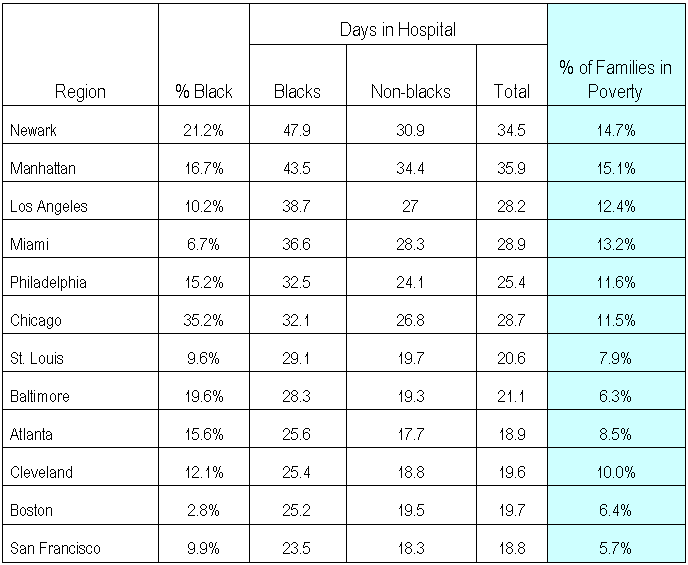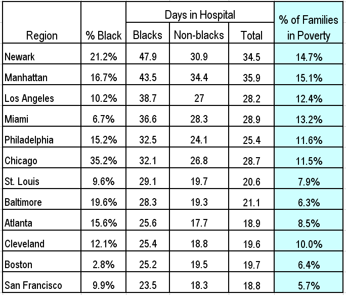 So how does one account for the statement that poverty and race don’t matter? Their Dartmouth colleagues left the real data behind and retreated into their mythical world of “quintiles,” in which the nation’s hospital referral regions are grouped into five uqintiles based on their levels of Medicare spending. This brings together disparate geographic areas which, when aggregated and averaged, all regress to the mean, and nothing is different. It’s this same shell game that gave us the “30% solution,” but the shells have been turned over, and we now know that nothing is there. Thankfully, the poor have won. Poverty matters.