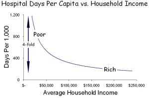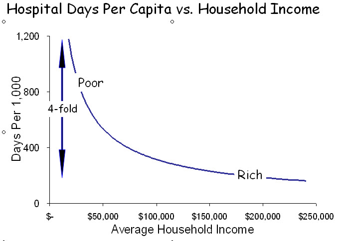 The most powerful characteristic associated with wellness, mortality and health care utilization is income. Low-income patients are sicker, die earlier and consume 2-4 times as much health care as affluent patients. And, because income inequality is greater in the US than in any other developed country, the extremes are greatest in the US.